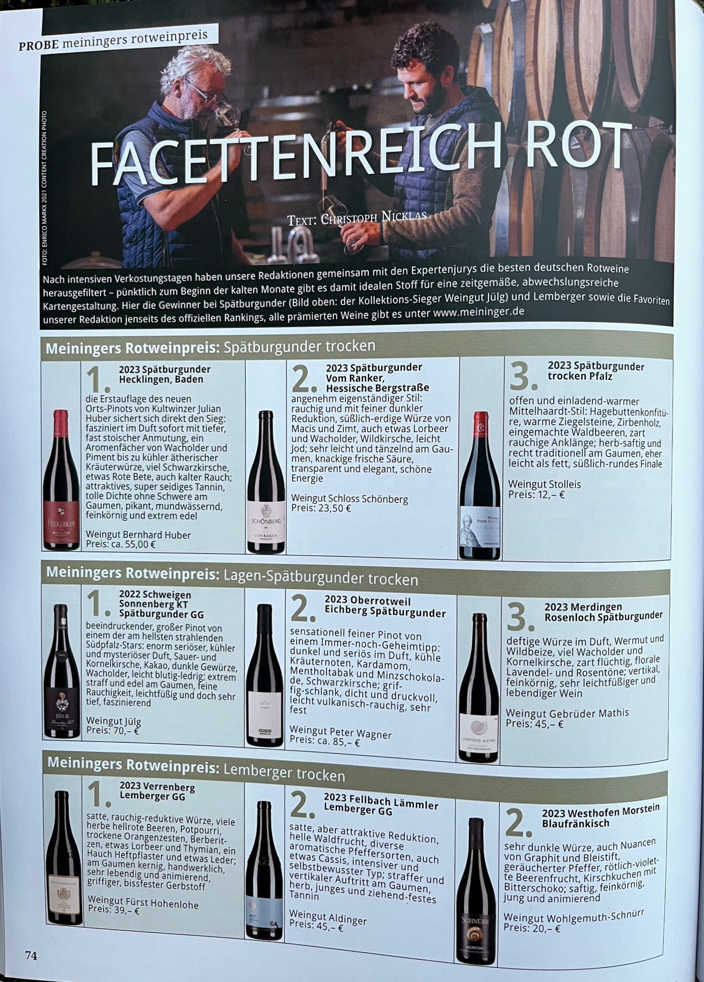 Neben bekannten Überflieger-Betrieben wie Jülg, Rings, Franz Keller, Meyer-Näkel oder Aldinger schafften es diesmal auch einige Namen ins Spitzenfeld, die man für die Zukunft unbedingt auf dem Zettel haben muss. Etwa die Brüder Christoph und Thomas Baum-Barth, die ihr Weingut in der traditionellen Spätburgunder-Hochburg Ingelheim erst 2020 gründeten, oder Pascal Oberhofer (Edesheim), Lukas Reinhardt, Hans-Christoph Stolleis (Mußbach) und Oliver Gabel (Herxheim am Berg) für die neue Pfalz-Generation.